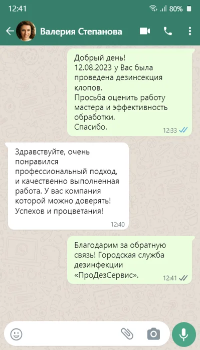Наша компания работает с 2007 года, более 30000 довольных клиентов. В том числе заключено более 500 договоров с юридическими лицами. Мы оказываем полный спектр услуг — от заключения договоров для СЭС до борьбы со всеми насекомыми и грызунами.
